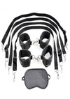 Cuff your lover to your mercy. Let them know you're in charge! The adjustable tethers can be tied to just about anything you can conjure up, the only limitation is your imagination! Kit includes: 4 Adjustable fantasy cuffs, 4 Adjustable tethers and a FREE Love Mask.