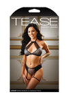 B662 LOGAN Metallic foil lace halter bralette & gartered panty