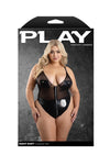 Wetlook and Mesh Zipper Bodysuit with Utility Pocket Detail and Removable Security Badge