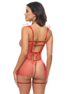 Romantic, risqué, and designed to steal the spotlight — the Darcy Open Cup Sheer Babydoll delivers full drama with a flirty flyaway silhouette and daring open cups. Made from airy sheer tulle with delicate lace-up ribbon detail, this piece floats over the body while baring just enough to tease. Finished with attached garter straps and a matching G-string, this babydoll is your go-to for lingerie that loves the spotlight.