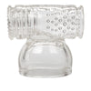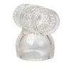 This accessory is made from soft, pliable phthalate free TPR and has a flexible masturbation chamber with tantalizing love nubs. The transparent soft jelly attachment fits onto the supple round head of your personal massager and becomes the ultimate pleasure tool. Use the vibrating vibe to intensify the glide and slide action. The chamber’s soft ticklers will tease and please you to ultimate ecstasy. For increased sensitivity, always use a quality lube with this accessory toy.